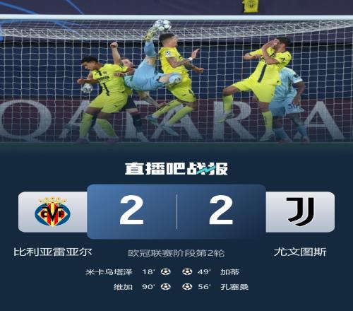 尤文2-2战平黄潜,尤文方面加蒂、孔塞桑打入进球,其中加蒂打入精彩的倒钩进球。